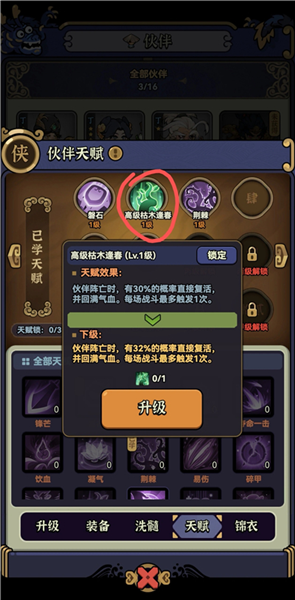 前期优先培养成型可用的伙伴,用洗髓丹刷伙伴等级解锁天赋格子(甲等五星最高上限),再用普通天赋把天赋格子上满,最后在上高等天赋,避免高等天赋被洗掉。