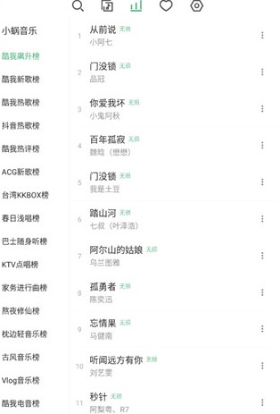3、通过排行榜功能,可按榜单顺序收听音乐,了解热门音乐趋势。