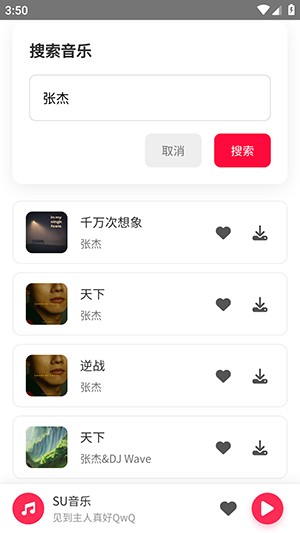 1、进入SU音乐软件后,可直接点击搜索功能,快速检索想听的歌曲。