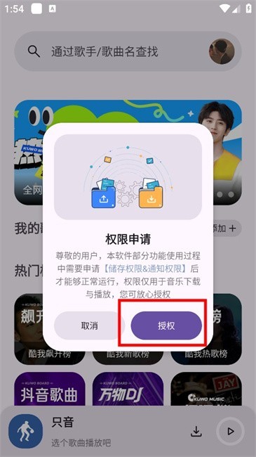 1、进入软件后,先完成存储权限与通知权限的授予操作。