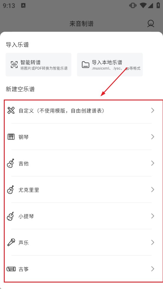 3、点击界面中的加号按钮,会弹出对应界面,可根据曲谱实际情况选择。