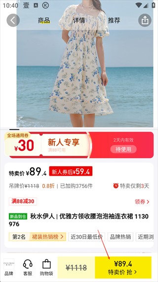 3、挑选心仪商品,点击特卖价按钮,即可参与抢购活动。