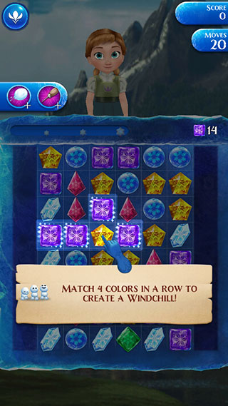 艾莎的“冰雪粉碎”:女王的魔法掌控全局,消除屏幕上所有同色冰晶,引爆连锁反应