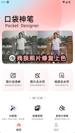 口袋神笔是一款多功能图像处理工具,集成了抠图、去水印等功能,将复杂的修图流程简化为轻松操作,无需专业设计背景,可快速完成人像分离、背景替换等任务,操作流程顺畅,,是日常办公与生活记录的得力助手。