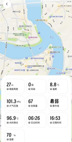 2、提供精准环境数据支持,高海拔出行时可提前预判身体适应度。