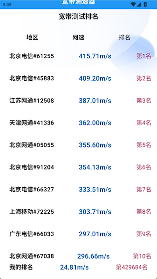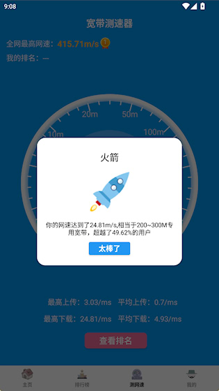 3、点击查看排名能查看全网用户的网速排名