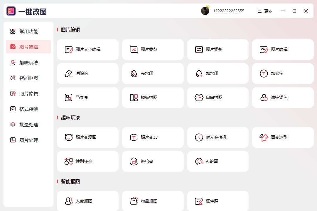 1、在对应站点或软件官网,下载安装一键改图应用,安装完成后打开软件。