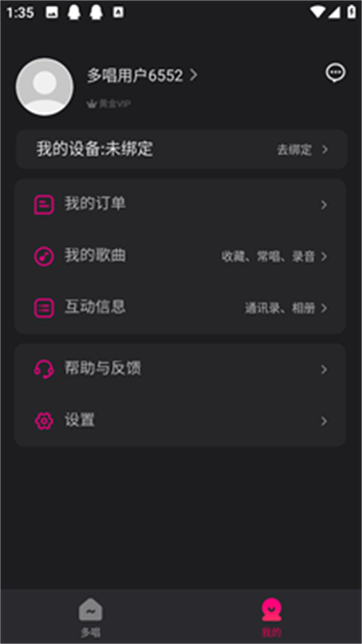 1、打开多唱app,找到并点击“我的”选项,随后选择“连接设备”功能。