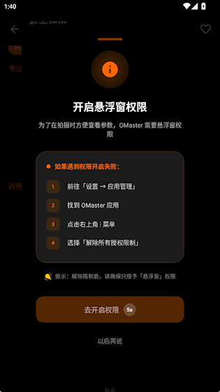 3、悬浮参考:拍摄时开启半透明悬浮窗,直接在取景画面旁显示关键参数,无需退出相机即可查看。