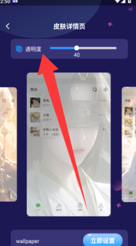 2、选定壁纸后进入预览界面,可实时调整透明度参数,自定义动态效果的显示深浅与融合程度。