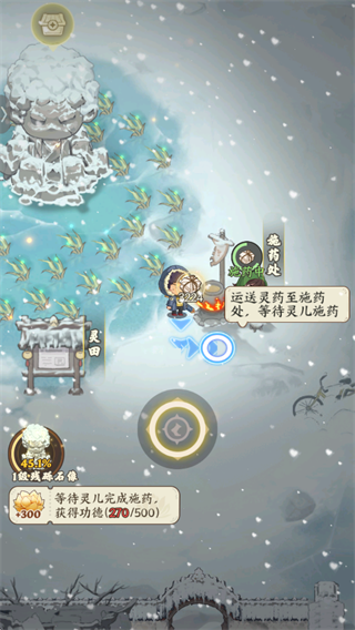作为游戏中主要的功德来源,在灵田处采集灵药并在施药处制作可以产生功德。