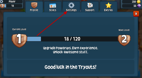 2、然后再点击屏幕上方的SETTINGS设置按键打开设置界面。