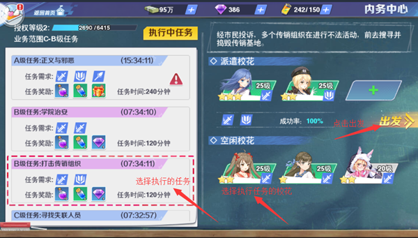 3、选择你要派遣执行任务的空闲校花