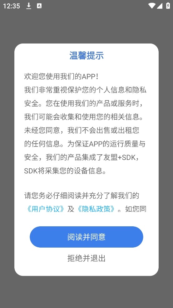 1、下载并安装软件最新版本,进入应用前需同意隐私相关权限。