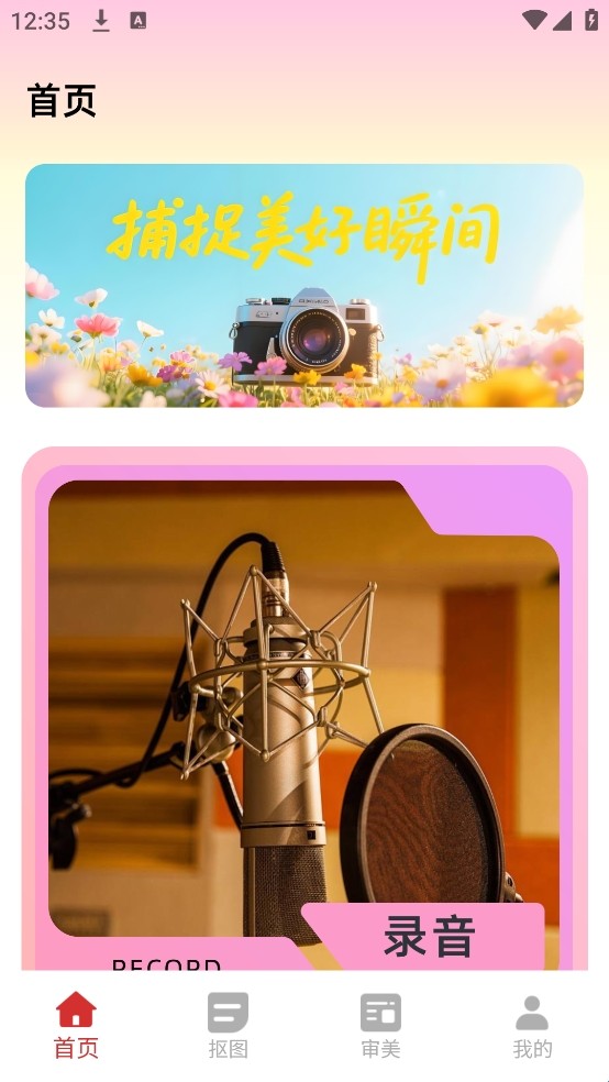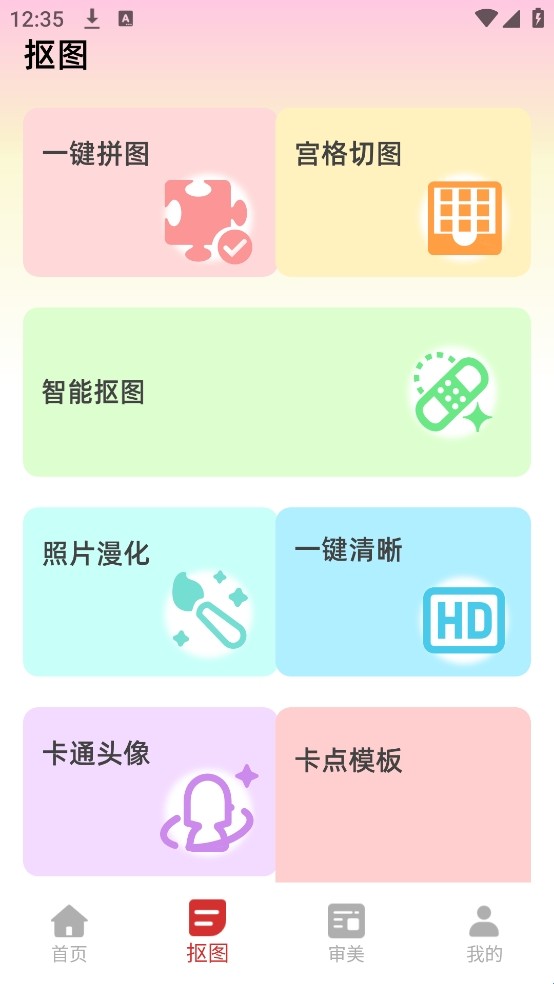 2、进入软件首页后,可看到各类功能选项,点击下方【抠图】入口。