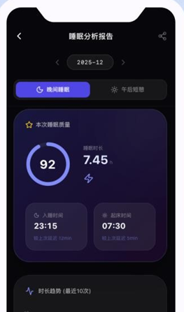 3、开启睡眠记录相关功能,软件会在睡眠结束后,自动生成详细的睡眠分析报告。