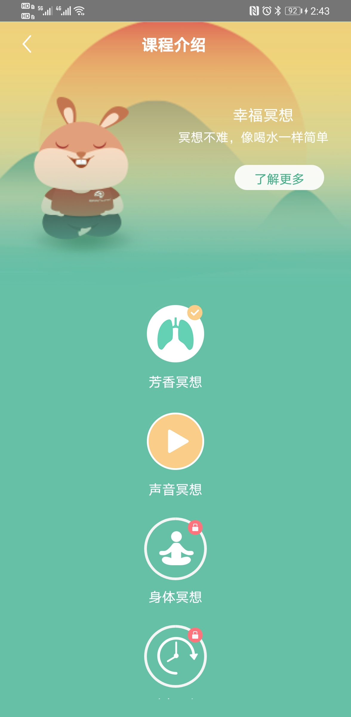 1、从低阶课程起步,首次使用建议选择芳香冥想或声音冥想,逐步解锁更高阶课程。