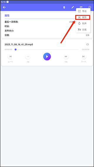 2、录音完成后,点击界面右上角的“剪辑”按钮,进入音频裁剪界面。