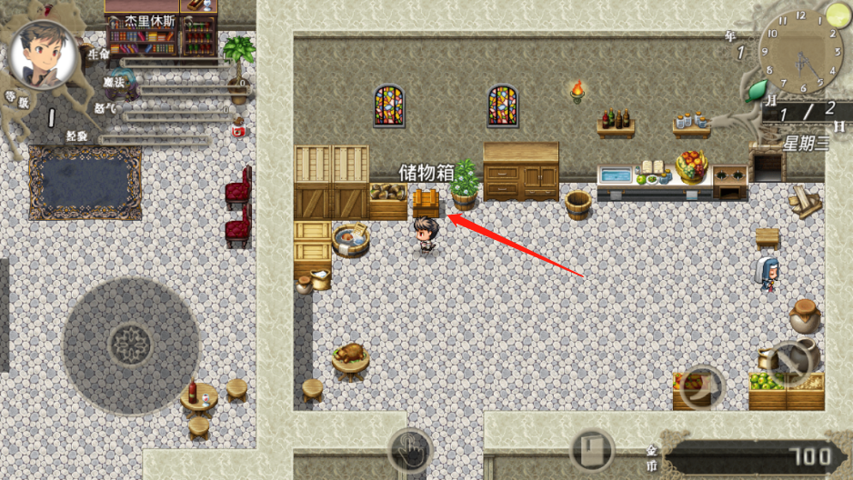 (厨房左上角有储物箱,后期可以花钱对储物箱进行升级以提高储物箱容量)