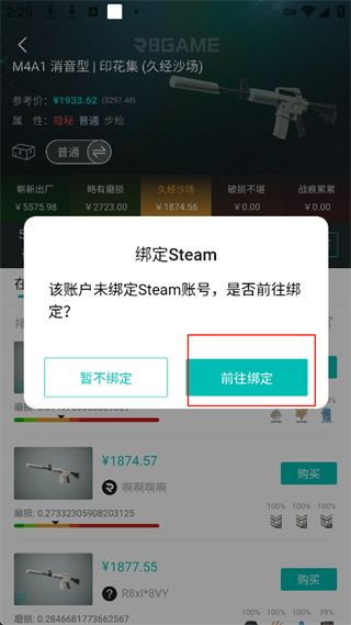 5、Steam账号绑定及身份认证成功后,即可顺利购买所选CS2饰品,完成全部交易。