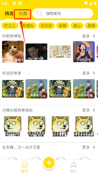 3、选择喜欢的分类后即可收获大波表情包