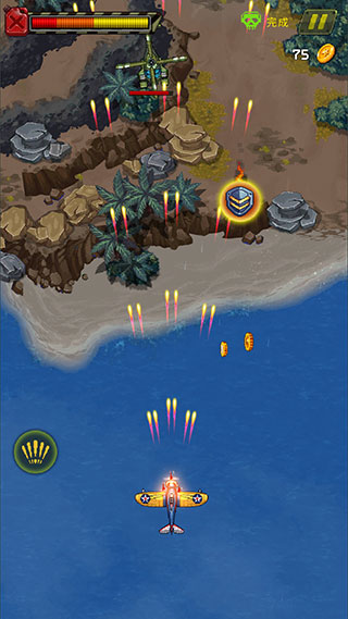 2、玩家进入关卡后,通过手指拖动战机,即可进行移动,并开始自动射击。