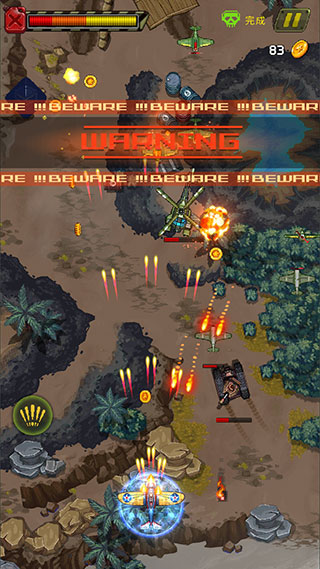光有常规关卡还不够,游戏里还塞进了好几种额外模式。轰炸行动需要瞄准地面目标精准投弹;Boss战考验走位和火力输出的节奏;护送任务则要一边清理敌机,一边保护脆弱的友方单位。每种模式玩法都不一样,反复切换着玩,根本不会腻。