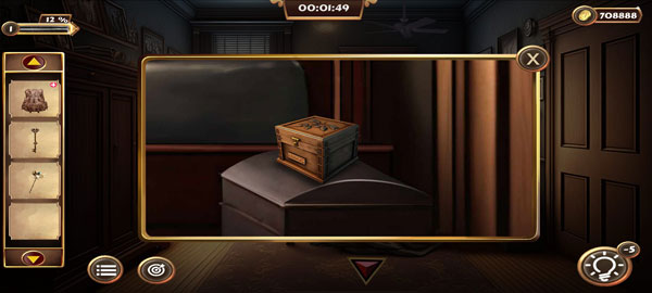 7、床头的盒子密码可以通过查阅卧室书架上的书籍来获取。要解开卧室下方的密码锁,需要从床上右上角的画框中找出六位数密码,通过这些线索,最终解锁门。