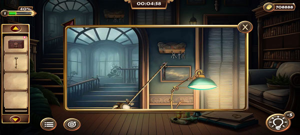 2、在客厅周围寻找并收集戳、钥匙和书籍。