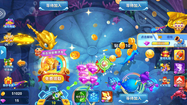 为什么不建议用2级炮?因为2级炮和1级炮打小鱼的效率差不太多,但消耗的金币却多了一倍,不划算。至于更高级别的炮,危险性就高了——万一几炮下去没打中什么大鱼,积分可能直接归零。前期稳一点,后面才能走得更远。
