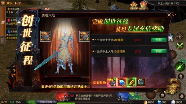 获取养成材料的核心玩法。优先击杀任务要求的精英怪,每完成一个阶段任务,都会获得钻石和养成材料。集齐4件信物即可解锁近卫战士,开启职业自由组合,打造专属连招体系。这个玩法进度直接影响职业解锁,是前期必须优先推进的核心内容。