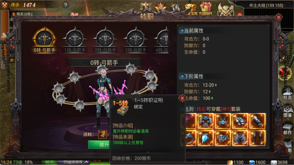 转职是提升战力的关键。每次转职都能获得巨额属性加成,并解锁高阶神装。前期建议刷100级以上的怪物,获取转职证明,满足转职要求后立即完成转职,解锁更高的养成上限。同时,转职后可以搭配对应职业的神套装,进一步提升连招与战力,全面提升你的战力。