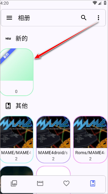 3、若需要新建相册,点击右上角的三个点图标,即可进入功能菜单页面。
