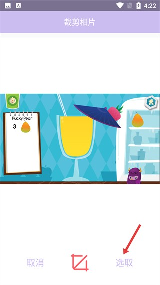 2、进入【裁剪相片】页面,完成裁剪调整后,点击右下角【选取】按钮,进入详细编辑界面。