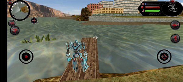 5、跳入水里后,可以点击右侧的切换按钮,即可从机器人变换成鲨鱼形态;