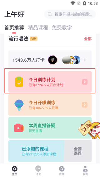 2、完成声音测试后,前往制定当日的声乐训练计划,明确练习方向。