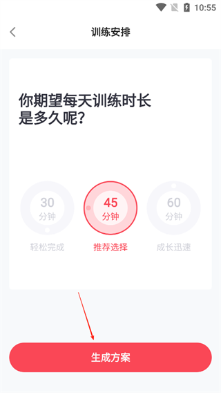 4、测试全部完成后,找到并点击生成方案按钮,获取专属训练方案。