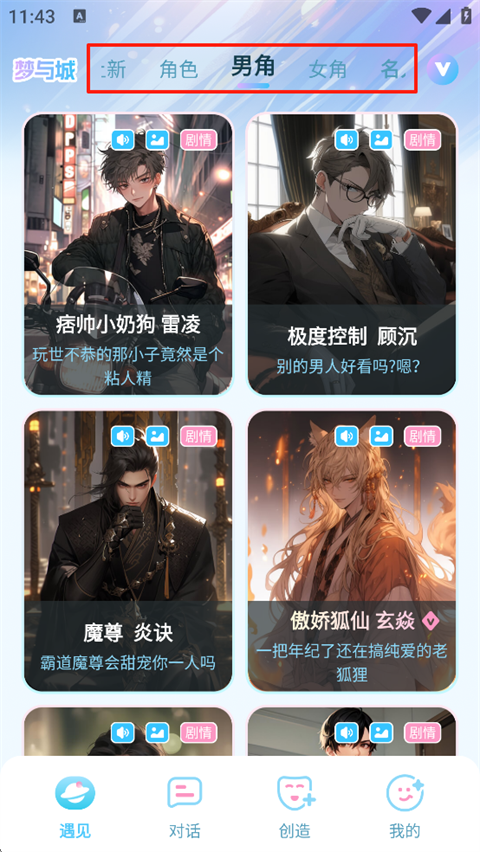 1、打开梦与城App,进入界面后选择想要对话的AI智能体。