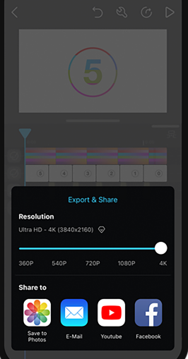 * 分享影片:可将制作完成的影片导出至相册,也能通过E-mail发送分享。