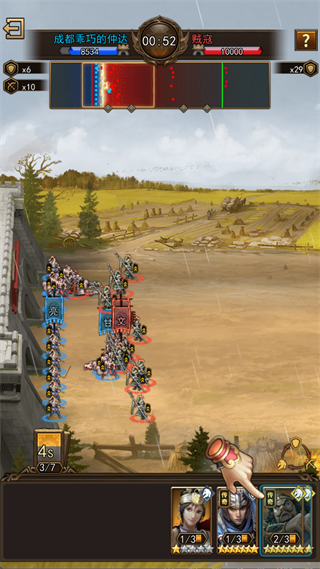 3、兵种存在克制关系,步兵克弓兵;弓兵克骑兵;骑兵克步兵。