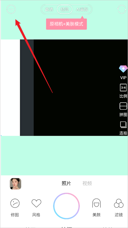 1、进入甜盐相机主页面后,首先找到左上角的三点标识并点击。