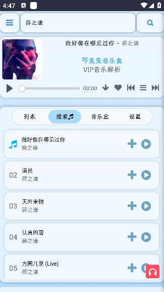 笒鬼鬼音乐盒是一款非常推荐的音乐播放器,里藏着数不清的好听歌曲,当下流行的新歌、经典的老歌都能找到,打开就能直接听,不用花一分钱开通会员,能享受到顺畅听歌的好体验,想找歌就在页面的搜索框里打上相关文字,歌词显示得清清楚楚,听歌的时候还能跟着伴奏一起唱,忙完一天的事情用它放松心情特别合适,喜欢听歌唱歌的朋友可别错过这个好用的工具。