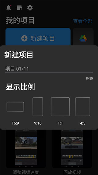 2、打开软件后,点击新建项目选项,根据需求选择要剪辑的视频比例。