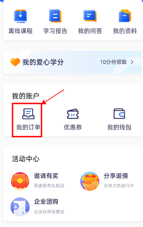 2、在“我的”页面中,找到并点击“我的订单”选项,进入订单管理页面,查看所有已购订单。