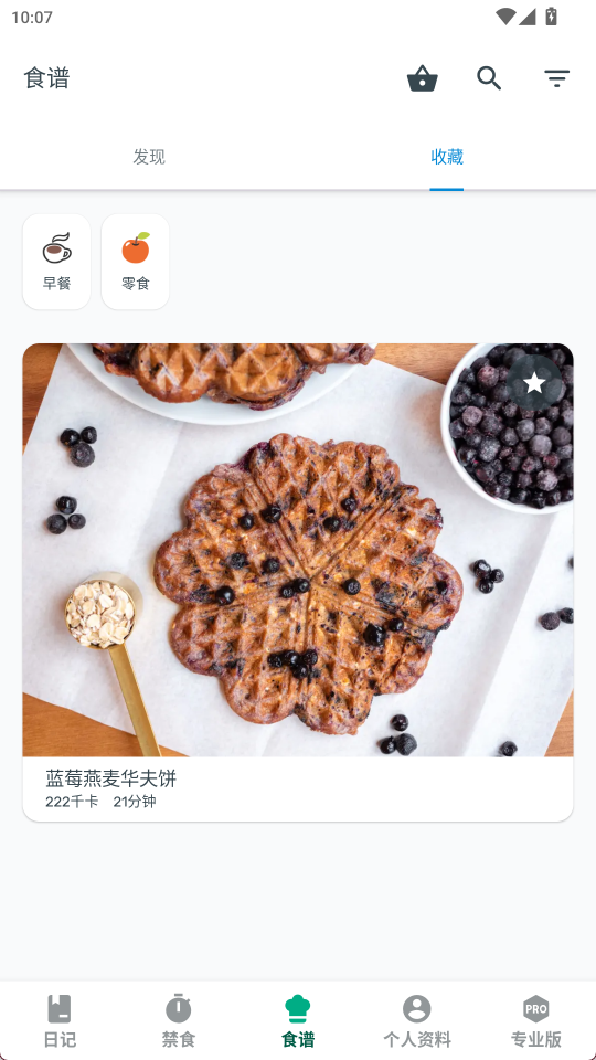 3、在食谱界面点击上方收藏即可找到收藏的食谱
