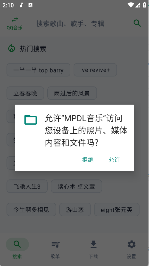 1、用户在本站下载MPDL音乐app,安装完成后开启相关权限,打开软件。