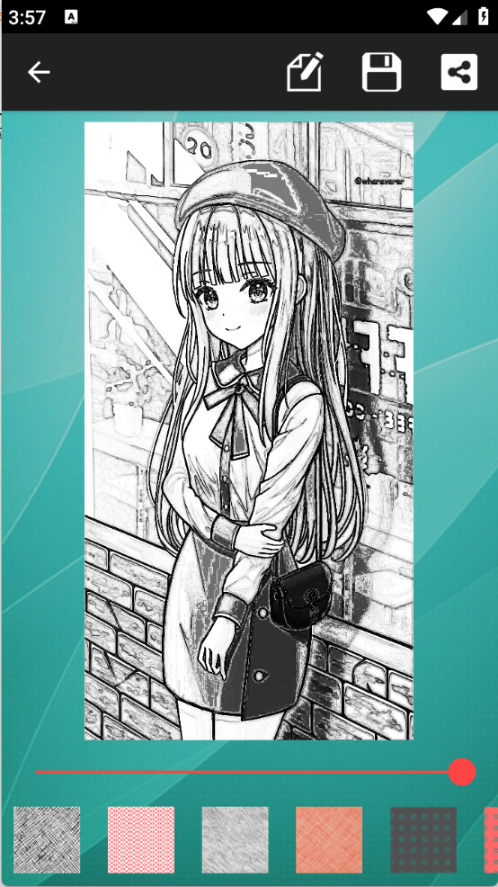 4、完成素描风格设置后,可对图片进行编辑,编辑完毕后可保存、分享作品。