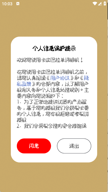 1、用户在当游网下载卡皮巴拉单词相机app,安装完成后打开,点击同意相关政策与协议。