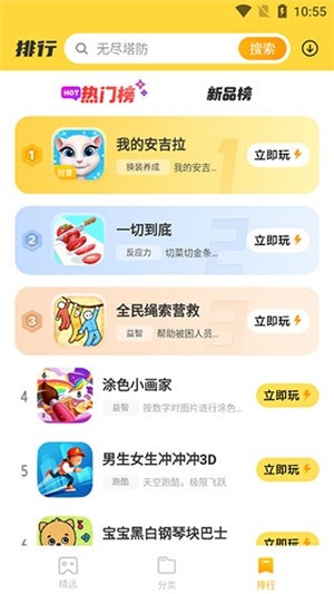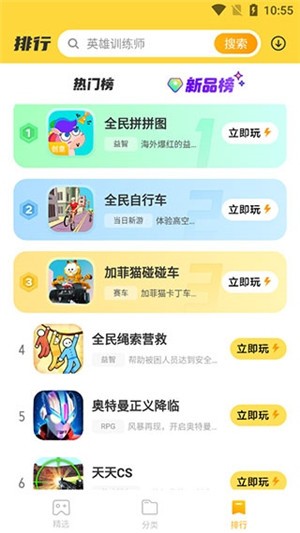 4、在排行页面中,能看到最热门的游戏榜单,点击“立即玩”,就能马上开始游戏。