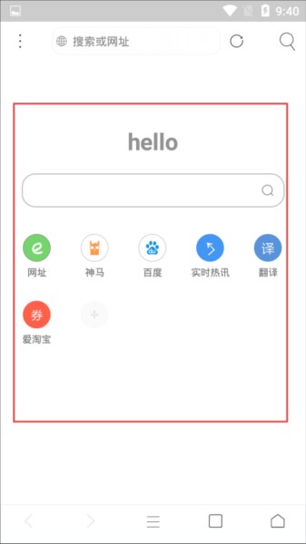 1、首页上方搜索栏可输入网址或关键词进行搜索,下方排列多个快捷入口,点击可快速进入对应页面,还有实时热讯等特色入口,便捷获取资讯。